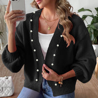 Women's Short Pearl Beaded Casual Loose Non-buckle Woven Sweater Coat Women's Short Pearl Beaded Casual Loose Non-buckle Woven Sweater Coat