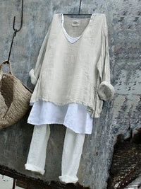 Cozy Artistic Linen-blend Patchwork Top Cozy Artistic Linen-blend Patchwork Top