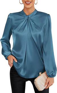 Womens Professional Office Lady Satin Blouse With A Stylish Womens Professional Office Lady Satin Blouse With A Stylish