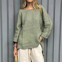 Vintage Cotton-Linen Crew-Neck Long-Sleeve Fashion Blouse For Women Vintage Cotton-Linen Crew-Neck Long-Sleeve Fashion Blouse For Women