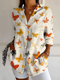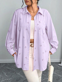 Relaxed-fit Casual Long-sleeve Printed Sequin-pocket Blouse Relaxed-fit Casual Long-sleeve Printed Sequin-pocket Blouse