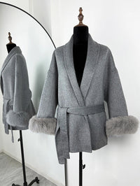 Cappotto di lana francese con scollo a V e lacci in pelliccia Cappotto di lana francese con scollo a V e lacci in pelliccia