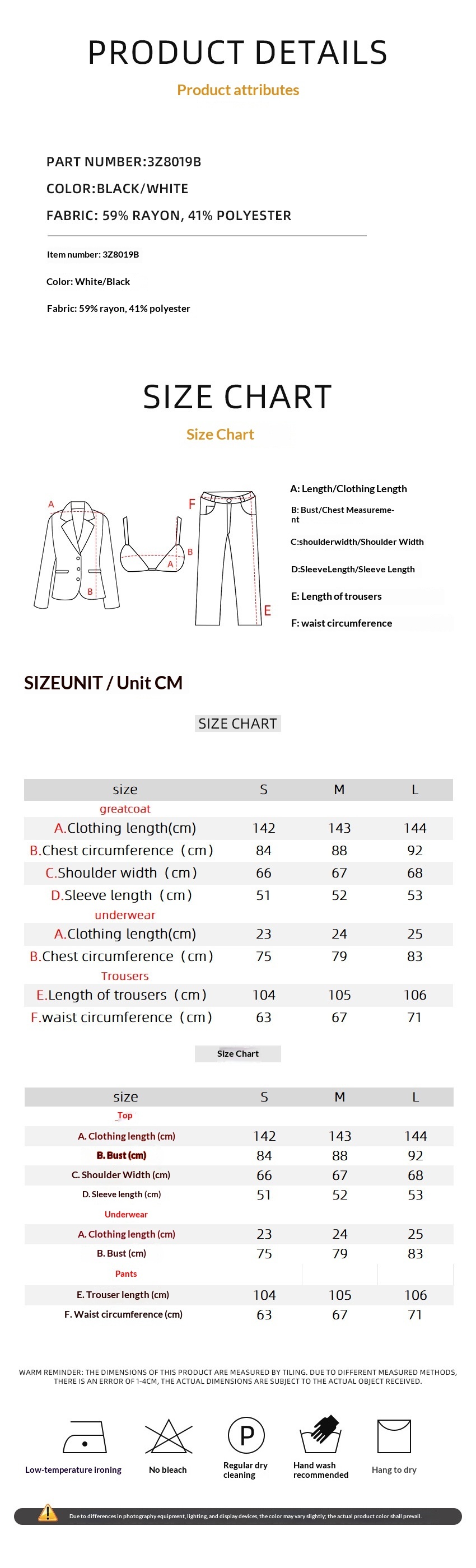 1. Asian sizes are 1 to 2 sizes smaller than European and American people. Choose the larger size if your size between two sizes. Please allow 2-3cm differences due to manual measurement. 2. Please check the size chart carefully before you buy the item, if you don't know how to choose size, please contact our customer service. 3.As you know, the different computers display colors differently, the color of the actual item may vary slightly from the following images.