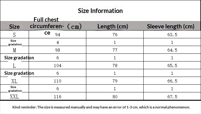 Sizes: S, M, L, XL, XXL