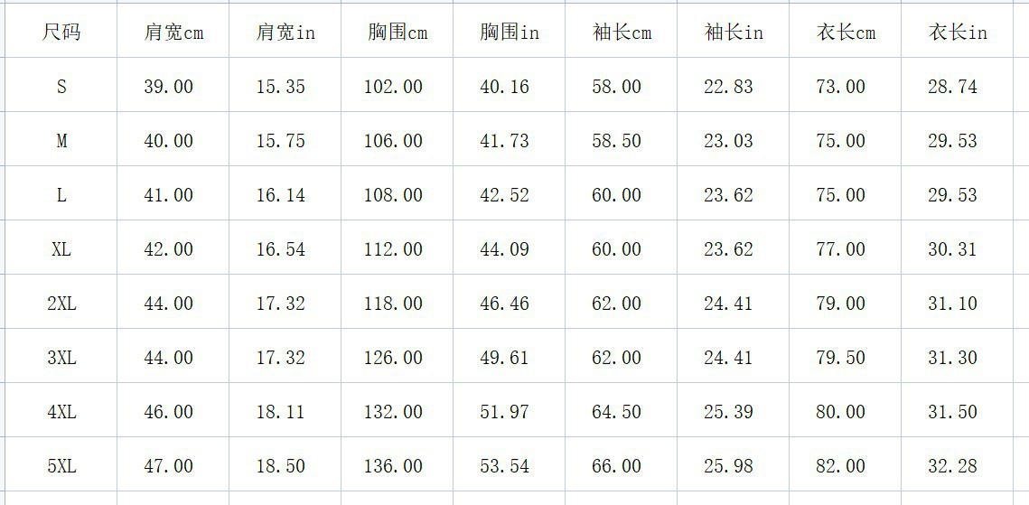 Sizes: S, M, L, XL, 2XL, 3XL, 4XL, 5XL